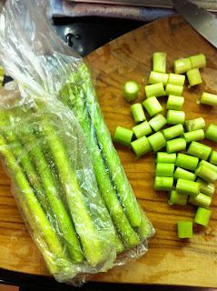 右の短く切ったのは別の料理(ニョッキ)に使用。